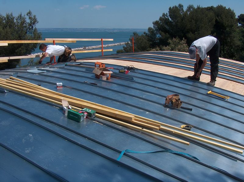 Pose d'une couverture à joint de bout en zinc naturel - support cintré
